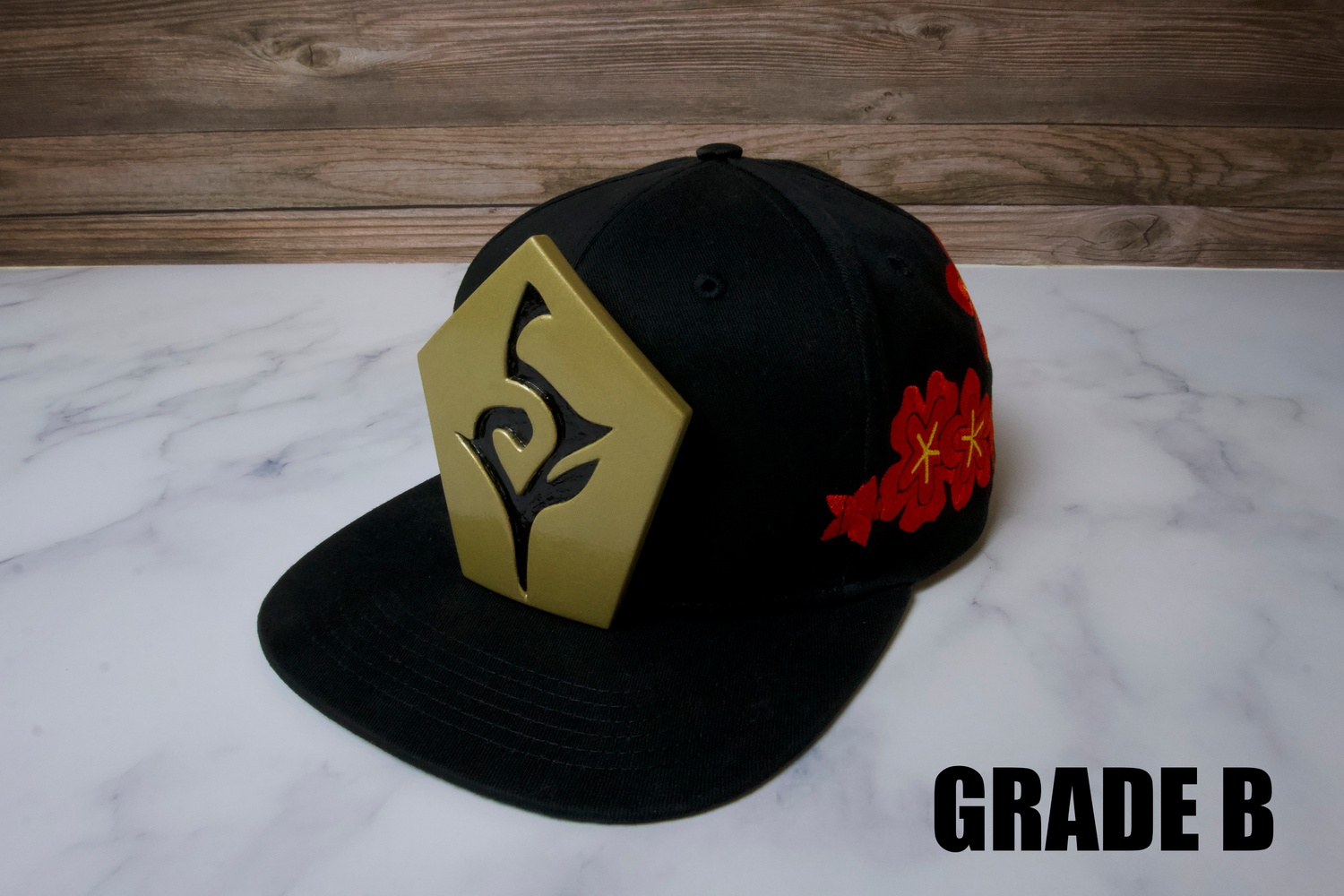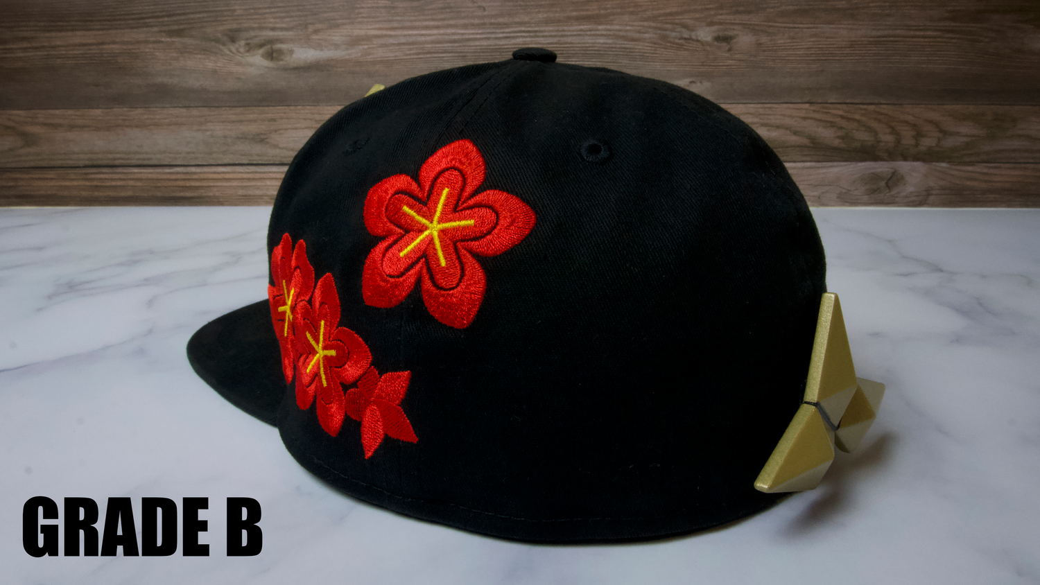 Inspired by HuTao from Genshin Impact. This cap is a modern interpretation of the hat HuTao wears. The front and back runes are 3D printed and hand finished, while the cap itself has HuTao's iconic silk flowers embroidered on the left side. Perfect for any HuTao or Genshin fan to subtly represent their favorite character! Supply is limited, order now!